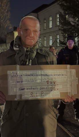 Zu Beginn verlas Monika Mokre, ein Mitglied der „Union für die Rechte von Gefangenen“, ein Statement. Besonders berührend war ein Statement eines Insassen von Hirtenberg, der dieses einer Teilnehmerin im Vorfeld geschickt hatte.